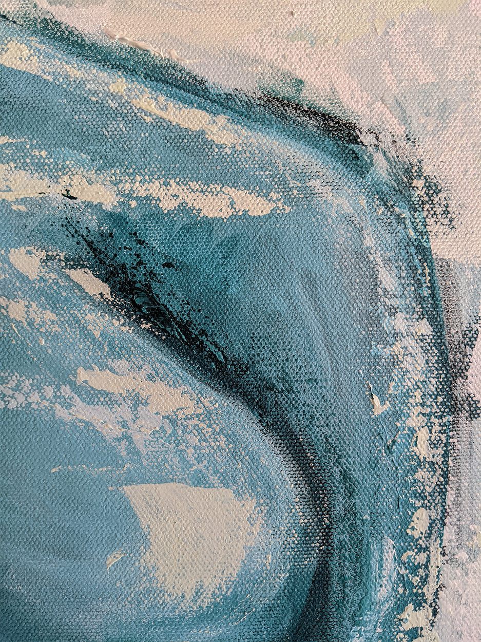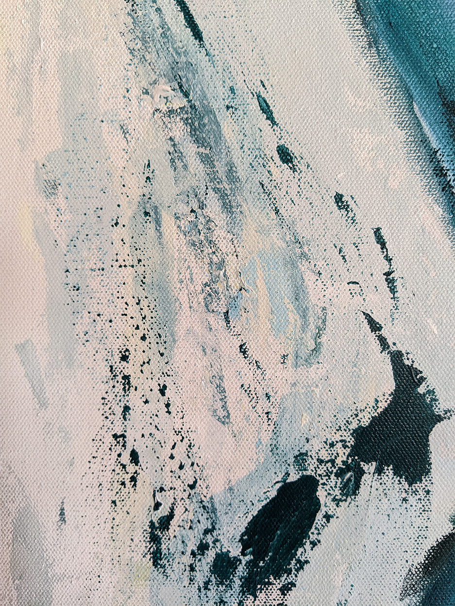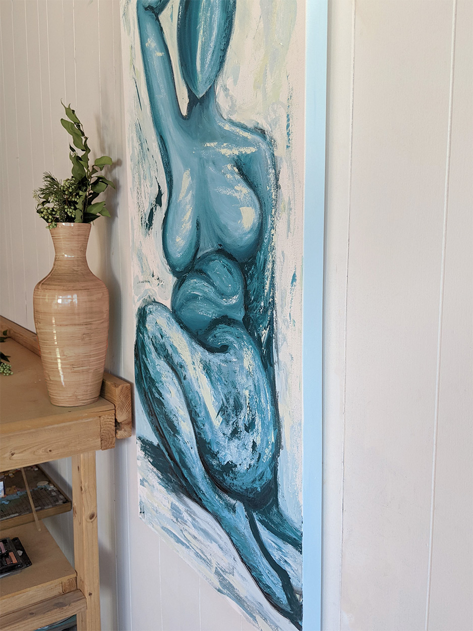 This piece is part of Figures, a collection of abstract gestural paintings exploring the female form and complex emotional states. Surrender to gravity is an original 24×48 acrylic painting on a gallery-wrapped 1.5 inch deep canvas.